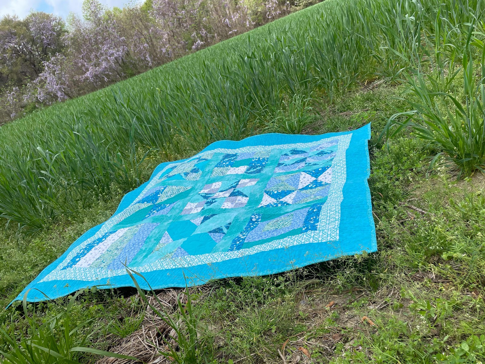 So, even if a quilt is not perfect and might be a pain to finish, it still can be done! Patience a s time or deadlines are what I need. What is it for you? Took these photos in a pretty field on the way to work! Love the green and the Wisteria in the trees!!