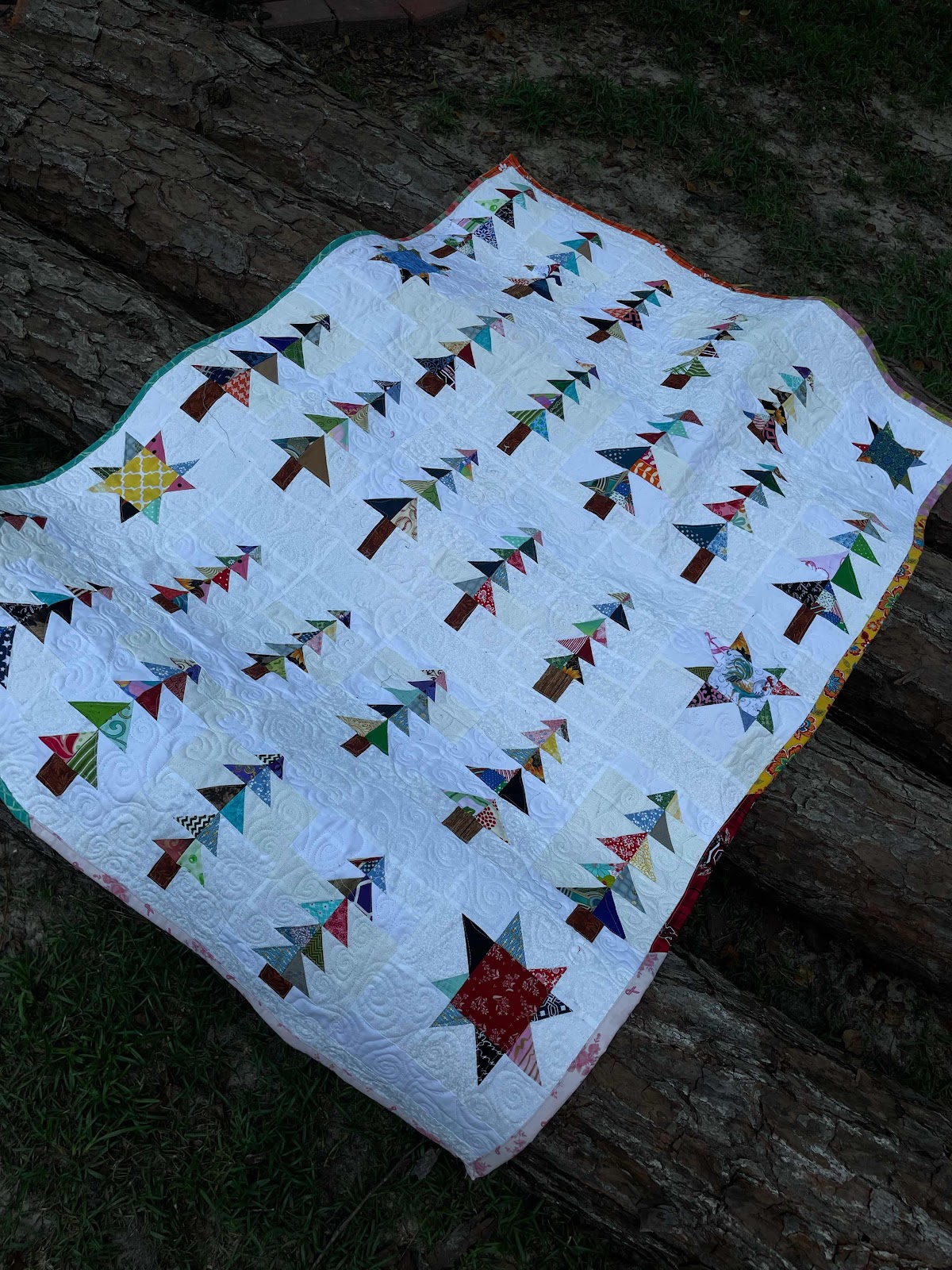 I quilted it with grass like rows across the bottom of all the trees. Then swirls around each tree.